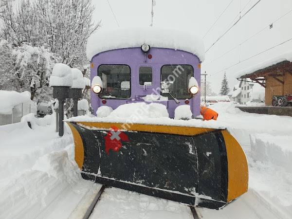 Haltestelle mit Wartehäuschen. Bus kommt um die Ecke und man muss aufpassen, dass man...Fügen Sie diese Karte zu Ihrer Website hinzu;