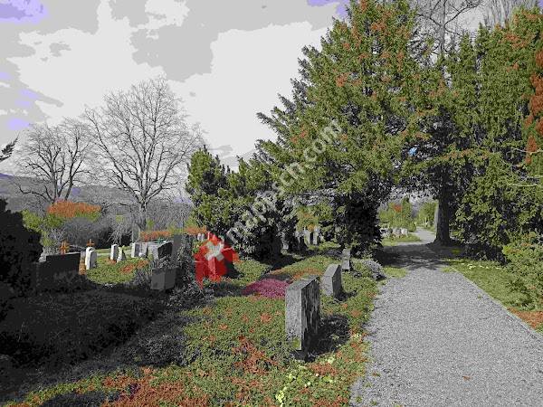 Direkt am Eingang des sehr weitläufigen Friedhofsareales bedindet sich die Aufbahrungshalle. Der Friedhof bietet verschiedene Grabstätten an: Sarg- Urnen- Familien- und Gemeinaschaftgräber und die Aufbewahrungshalle an. Erdbestattung im Rasen und das Gemeinschaftsgrab beim Weiher die Asche in eine grosse Gruft fallen auf. Das umfangreiche Bestattungs-und-Friedhofreglement findet man auf der Webseite der Gemeinde.nGenau gegenüber befindet sich die Katholische Kirche St. Johannis.