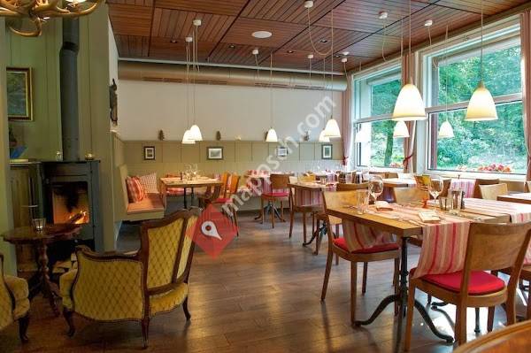Sehr schön gelegenes Restaurant, eingebettet inmitten eines Waldes. Die Terrasse ist wunderschön und lädt zum Verweilen ein. Das Innere ist schlicht, aber stilvoll eingerichtet – genau richtig. Die Weinauswahl war in Ordnung, jedoch fehlten zwei, drei bekannte Spitzenweine, die das Angebot perfekt abgerundet hätten. Die Bedienung war etwas eigen: leicht aufdringlich und versuchte, sich auf lustige Art in Szene zu setzen, was nicht ganz zum Ambiente passte.